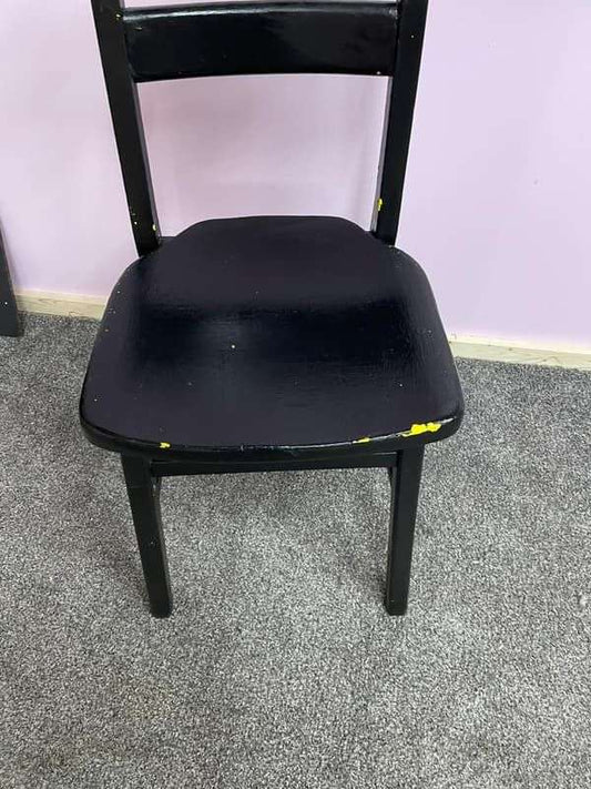 Low Painted Wooden Chair Distressed Paintwork Black Over Yellow
