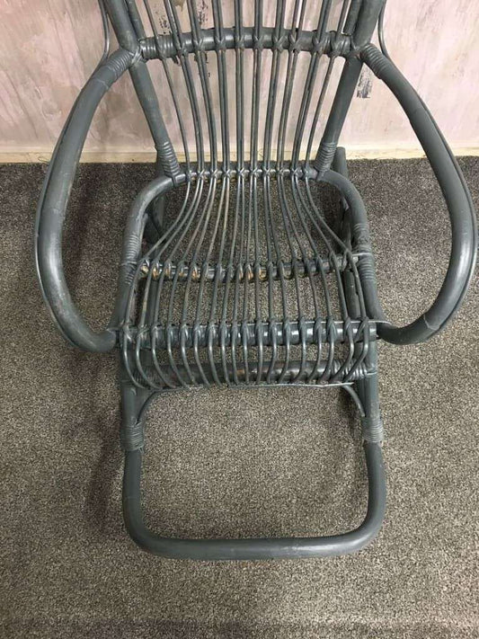 Painted Cane & Bamboo Rocking Chair With Arms Foot Rest Farrow & Ball Downpipe