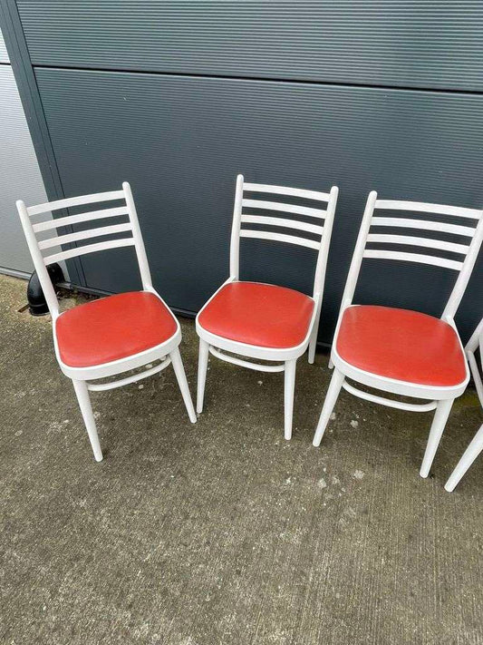 5x Vintage Retro 20thC Mid-Century Wooden White Chairs Red Seats Kitchen Dining
