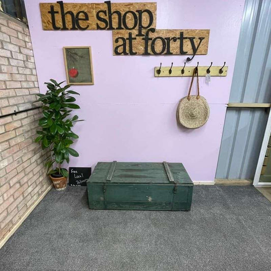 Vintage Large Wooden Trunk Toolbox Hinged Lid with Catches Coffee Side Table