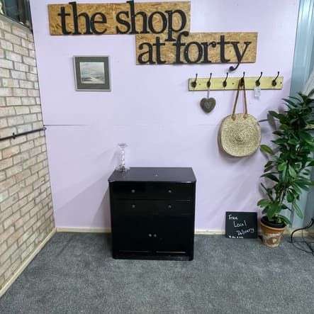 Simple Rustic Black Painted Wooden Cabinet Two Drawers Double Cupboard