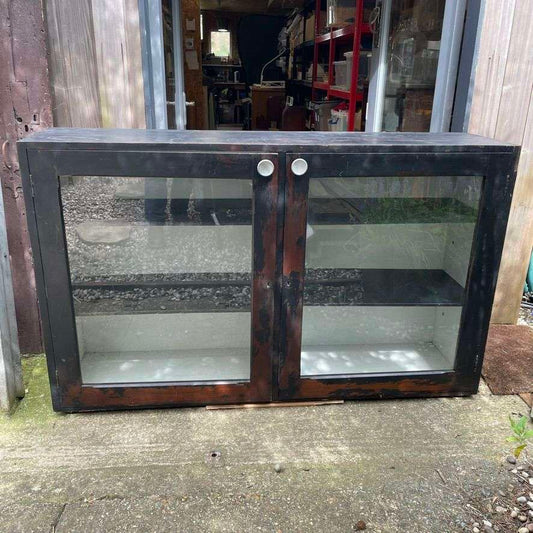 Vintage Rustic Glazed Double Shop Counter Cabinet Shelves Hospitality Retail
