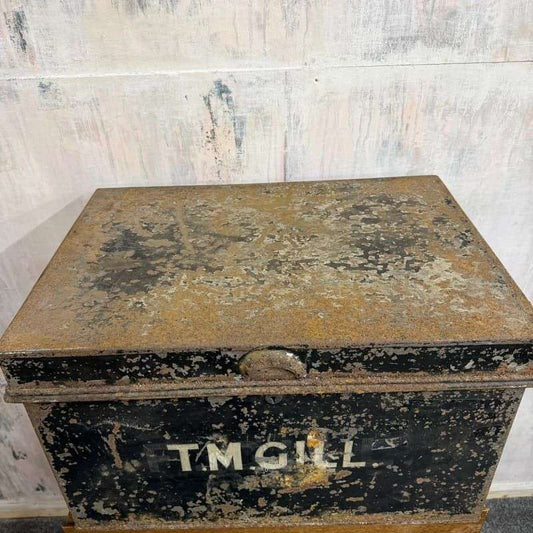 Large Vintage Solicitors Black Metal Deed Chest Coffee Table TV Stand