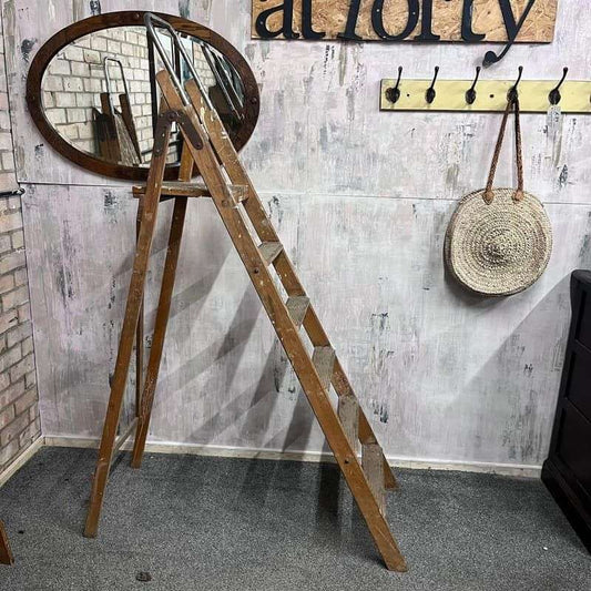 Vintage Painted Stepladder 3 Treads Platform Home Retail Prop