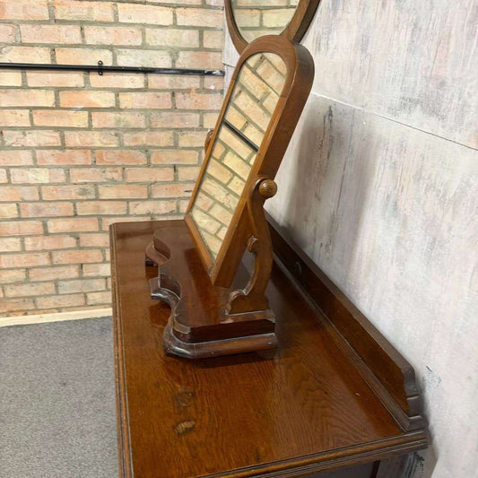 Vintage Dark Wood Swing Mirror Ornate Carving Scrolled Arms Knob Adjusters