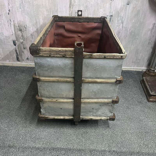 Vintage Laundry Trolley Wood Aluminium Steel Corners Castors Retail Display Prop