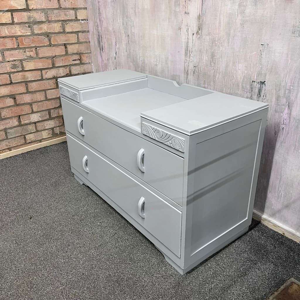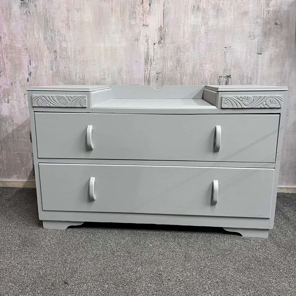 1950s Painted Dark Wood Dressing Table With 2 Drawers Pale Grey