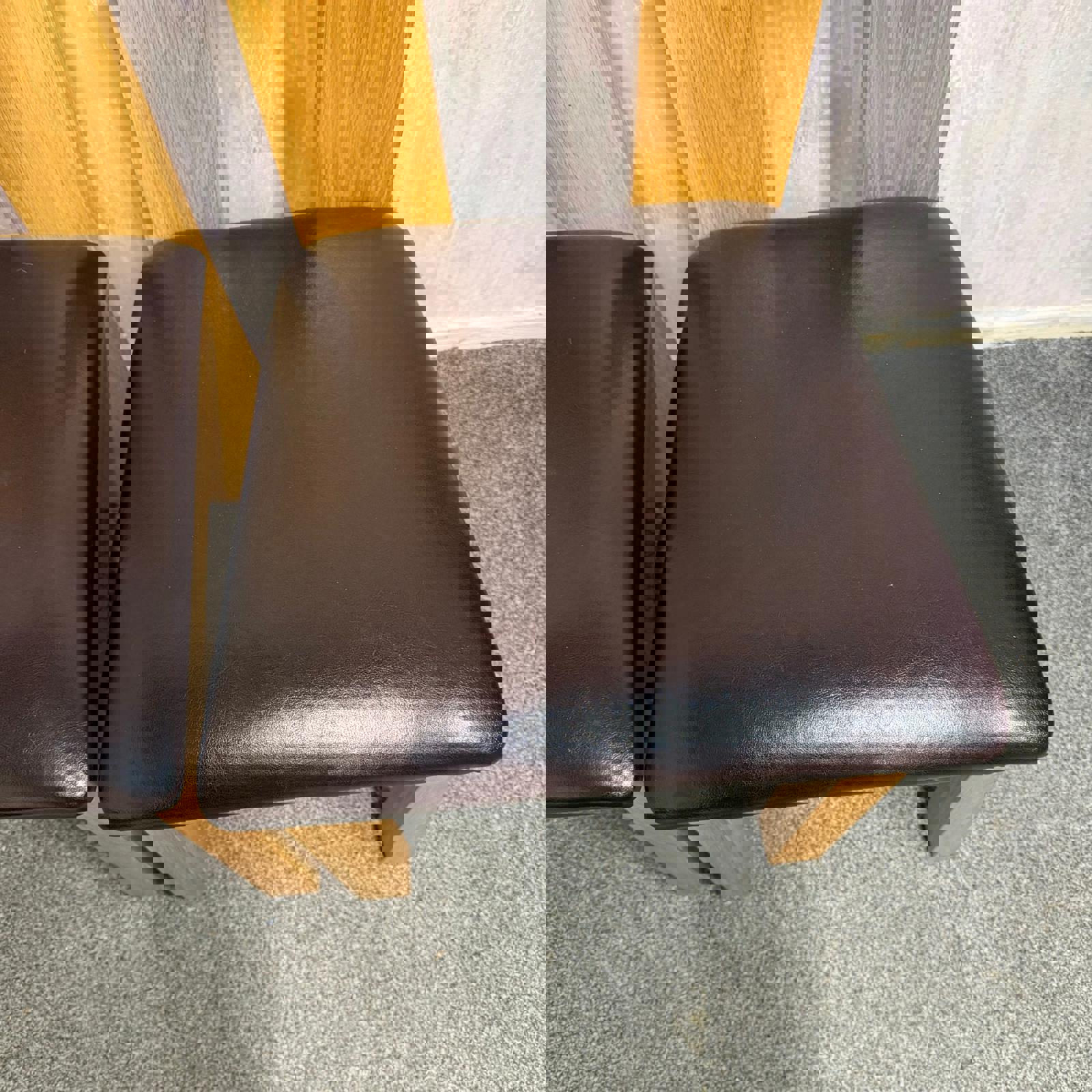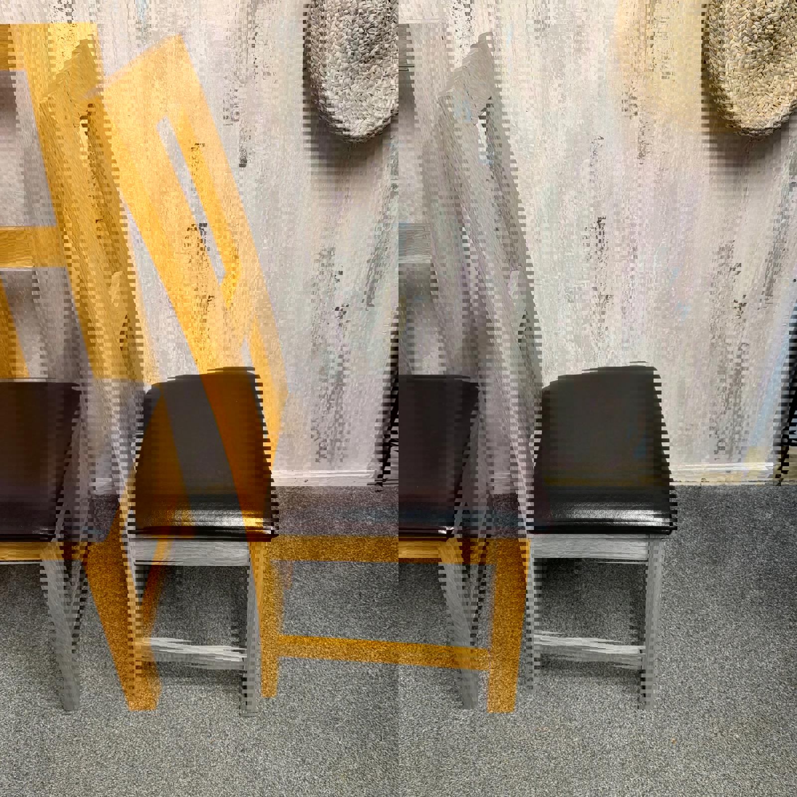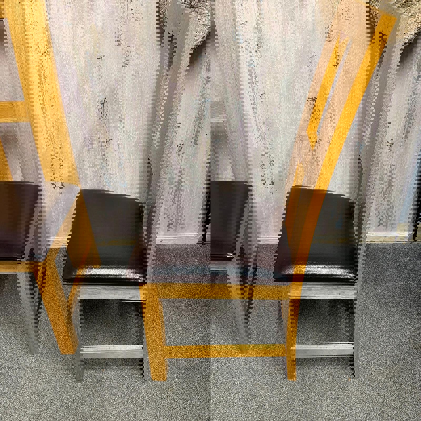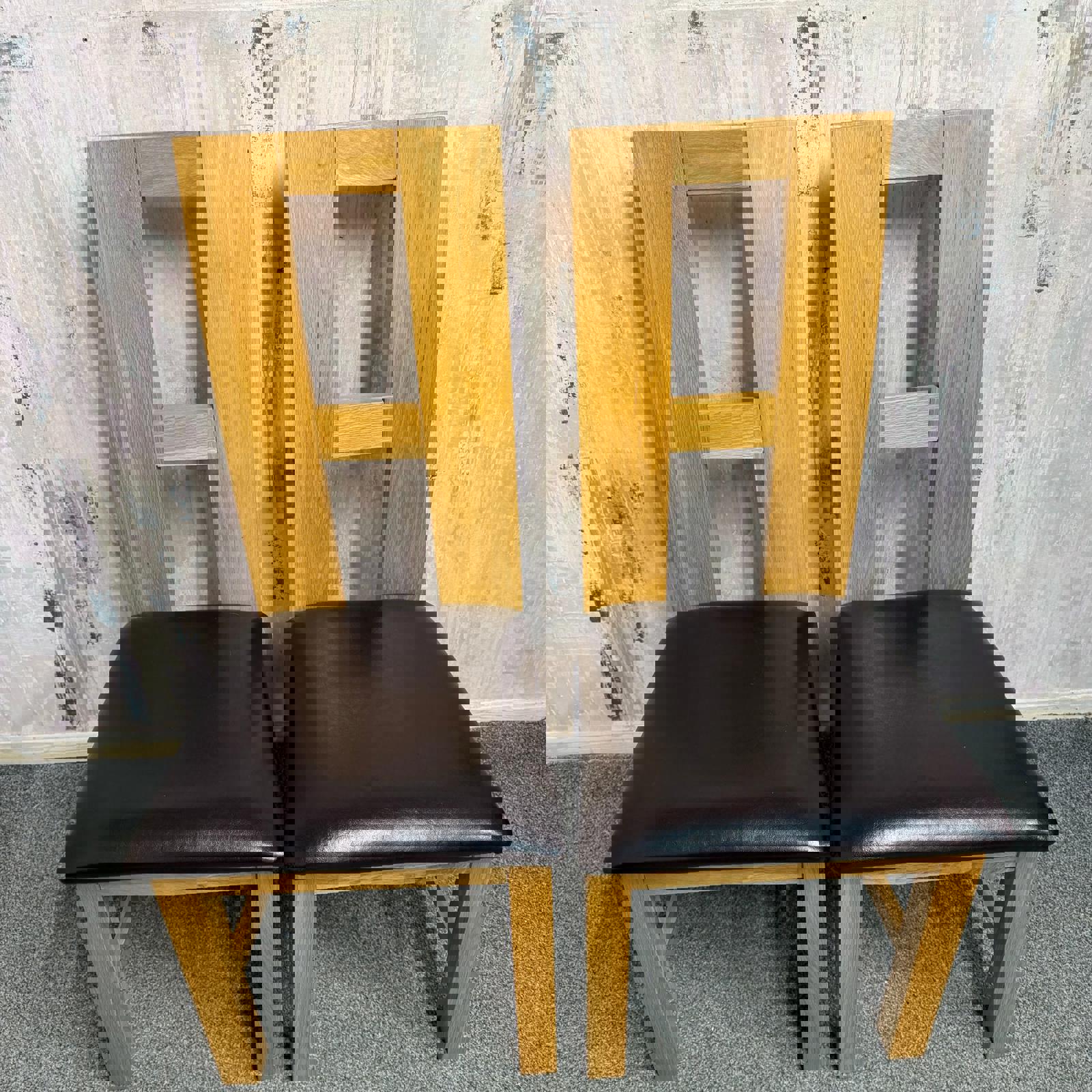 2 Solid Wood Dining Chairs Brown Leather Seats Sturdy Open Design Back