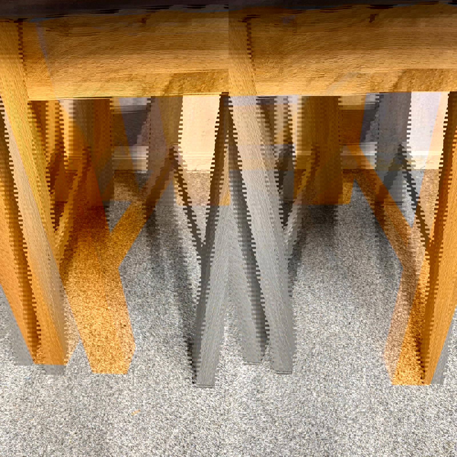 Both chairs sturdy with no obvious play in back or legs. Possibly from Oak Furniture Land. Slight age related wear but no obvious marks or wear to either seat.