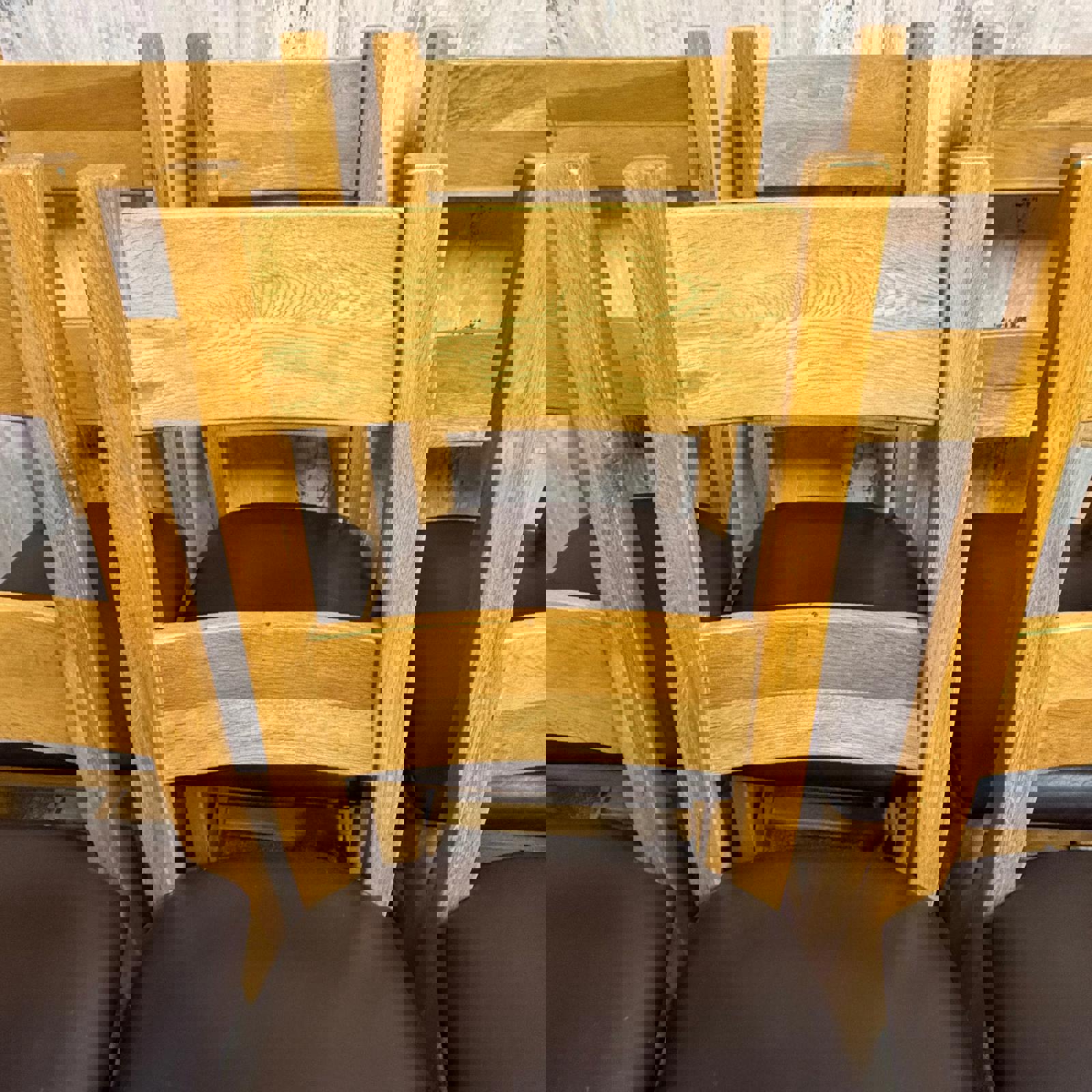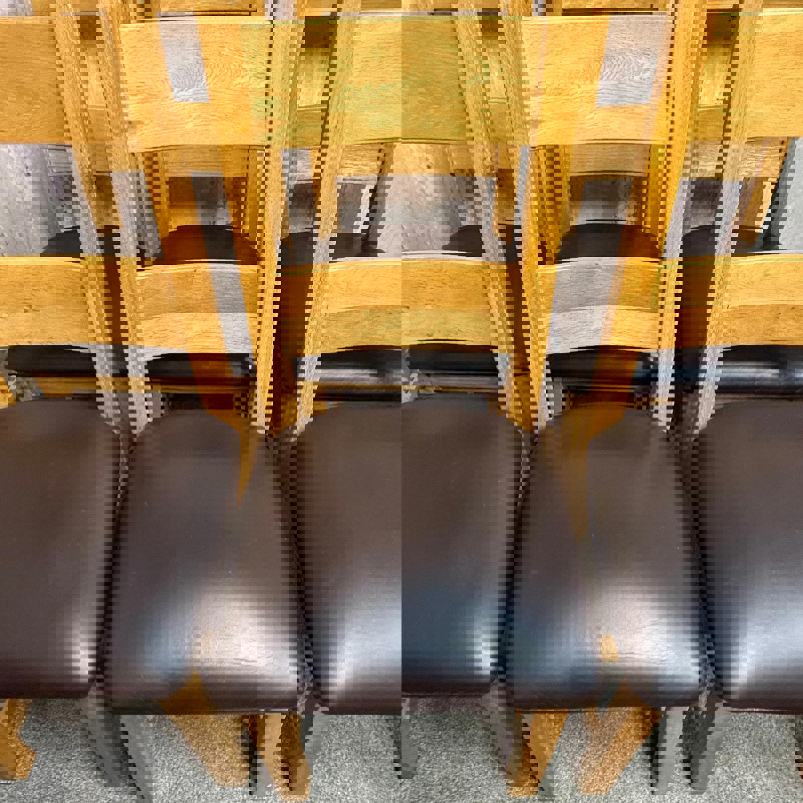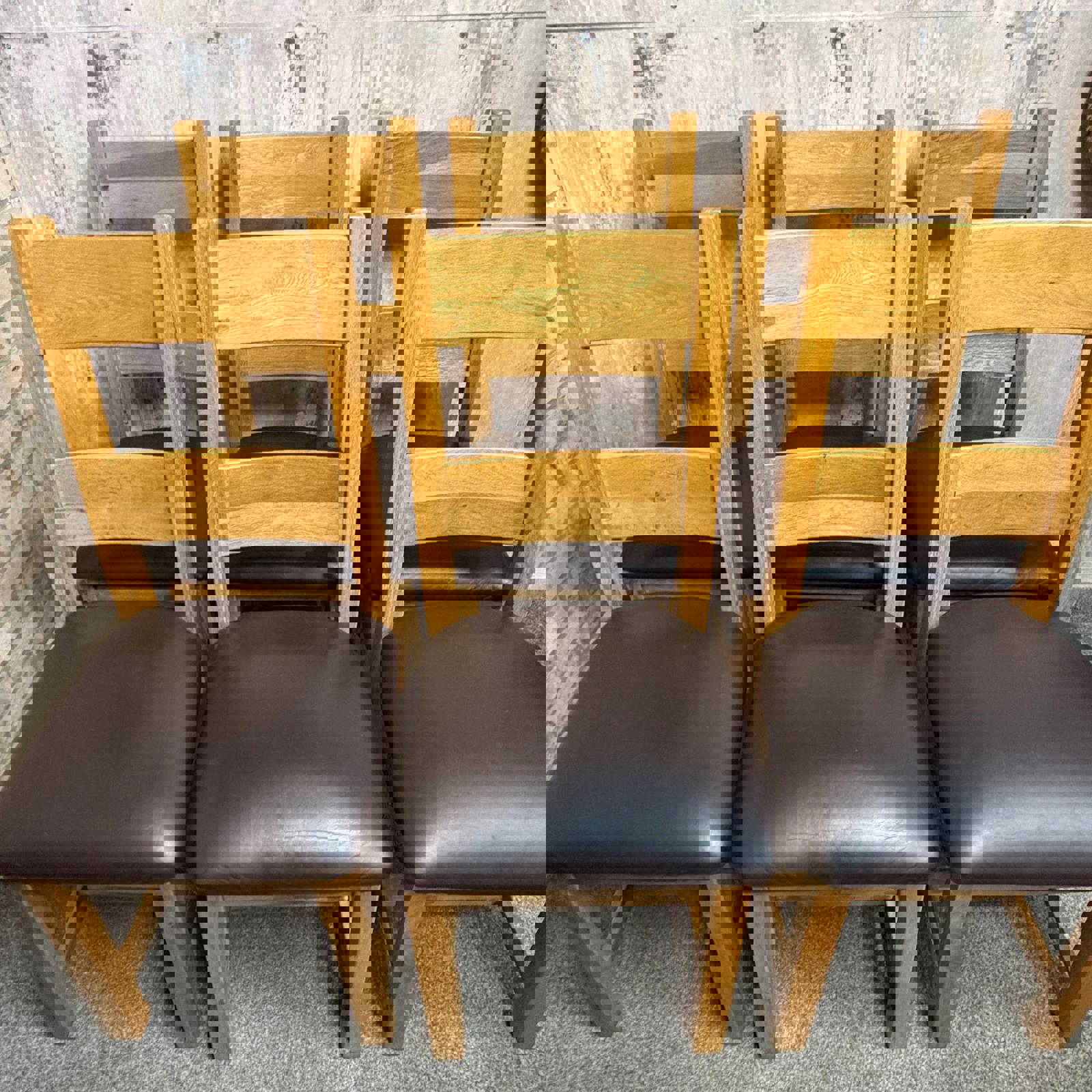 6 Solid Wood Dining Chairs Seats Brown Faux Leather Ladder Back