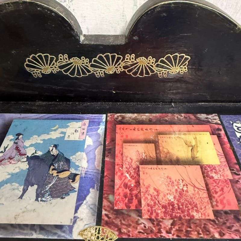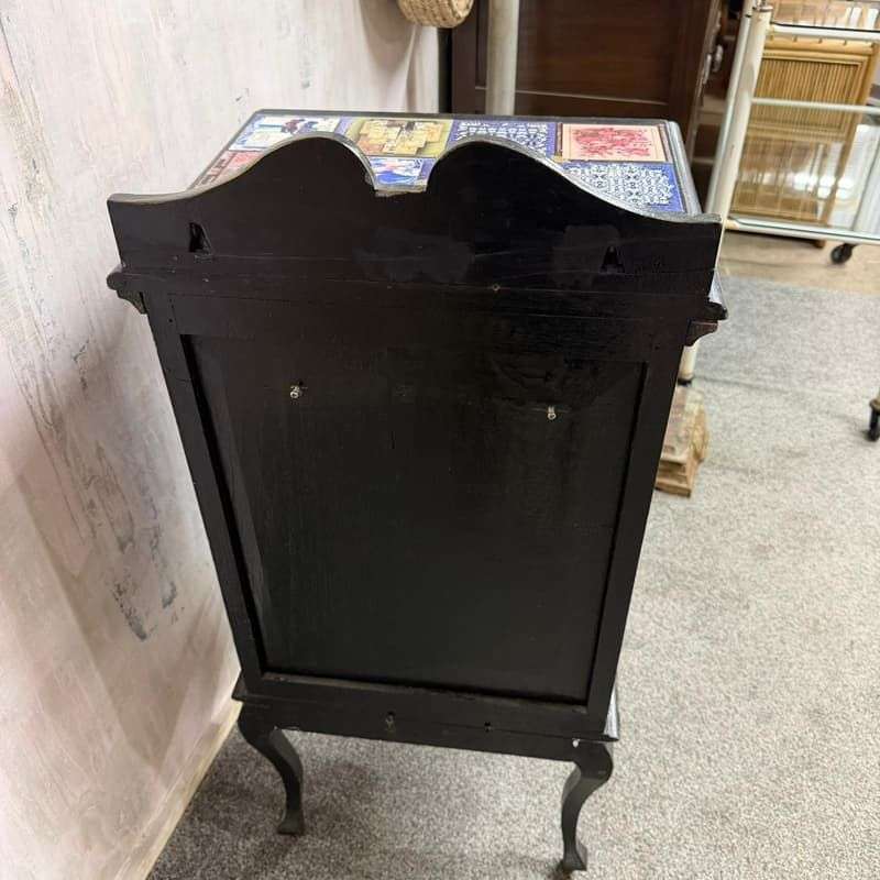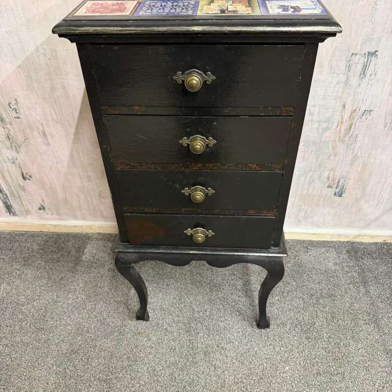 Black Painted 4 Drawer Night Stand Decoupage Top And Sides Cabriole Legs