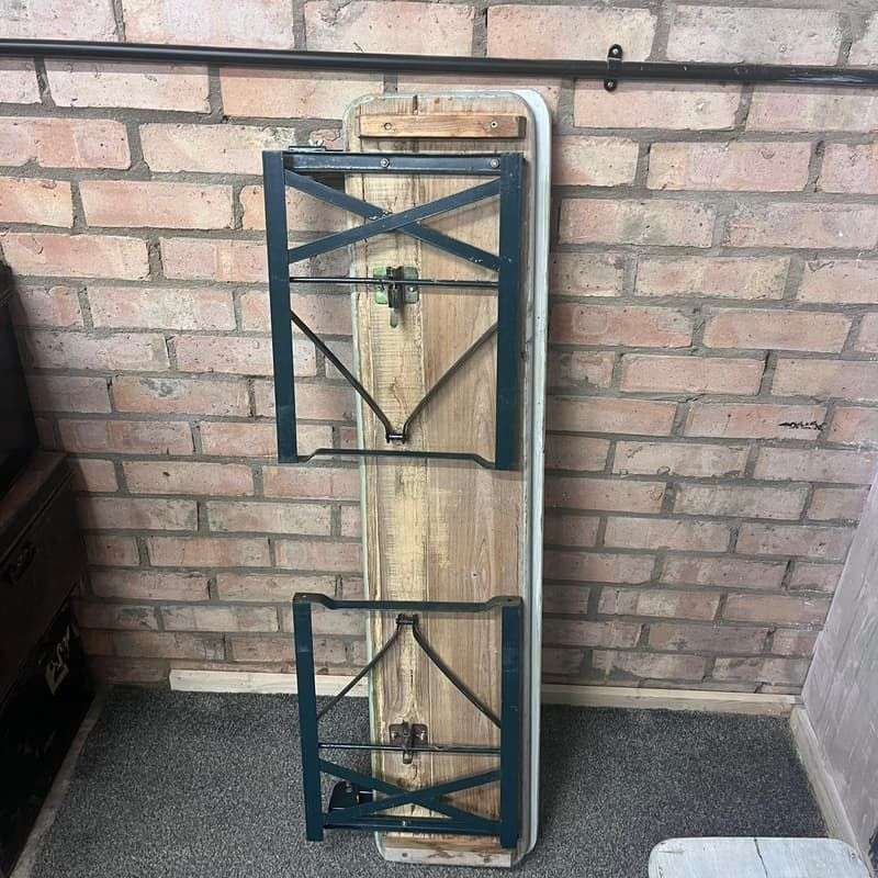 Vintage Folding Garden Camping Benches With Backs White Green Metal Frames Hospitality Pub