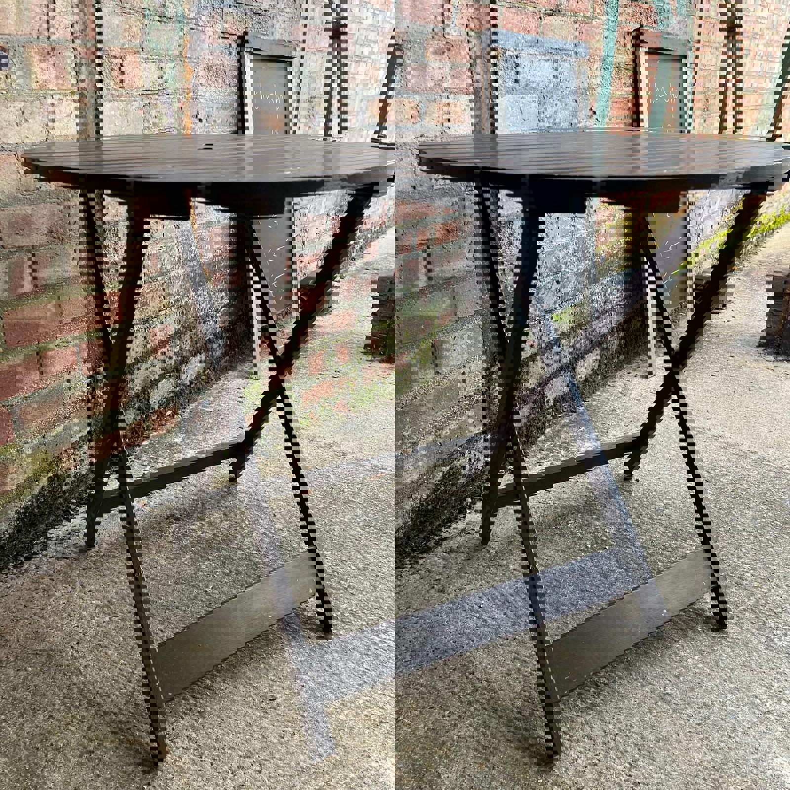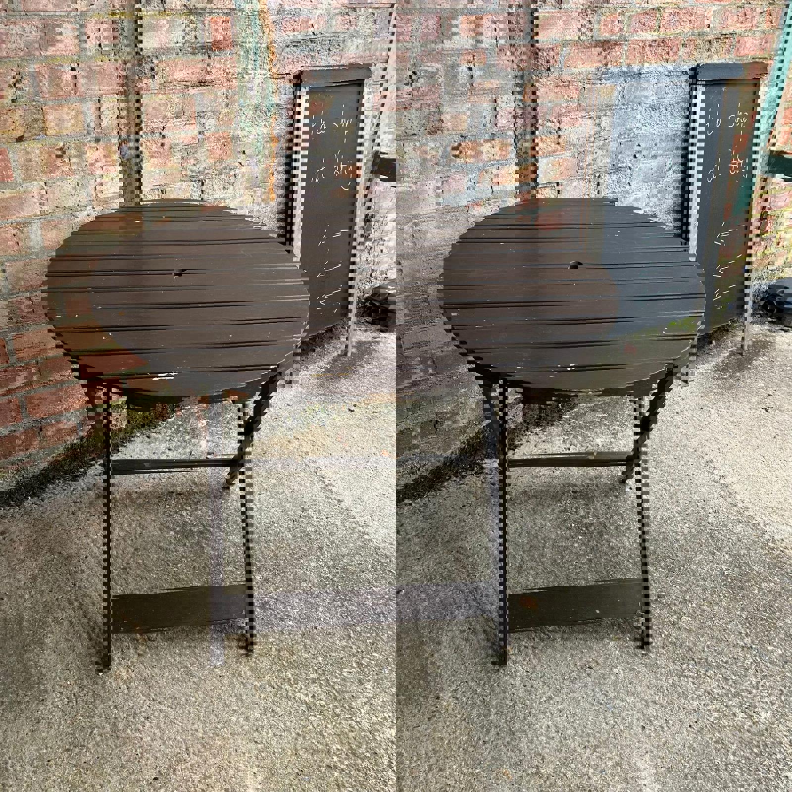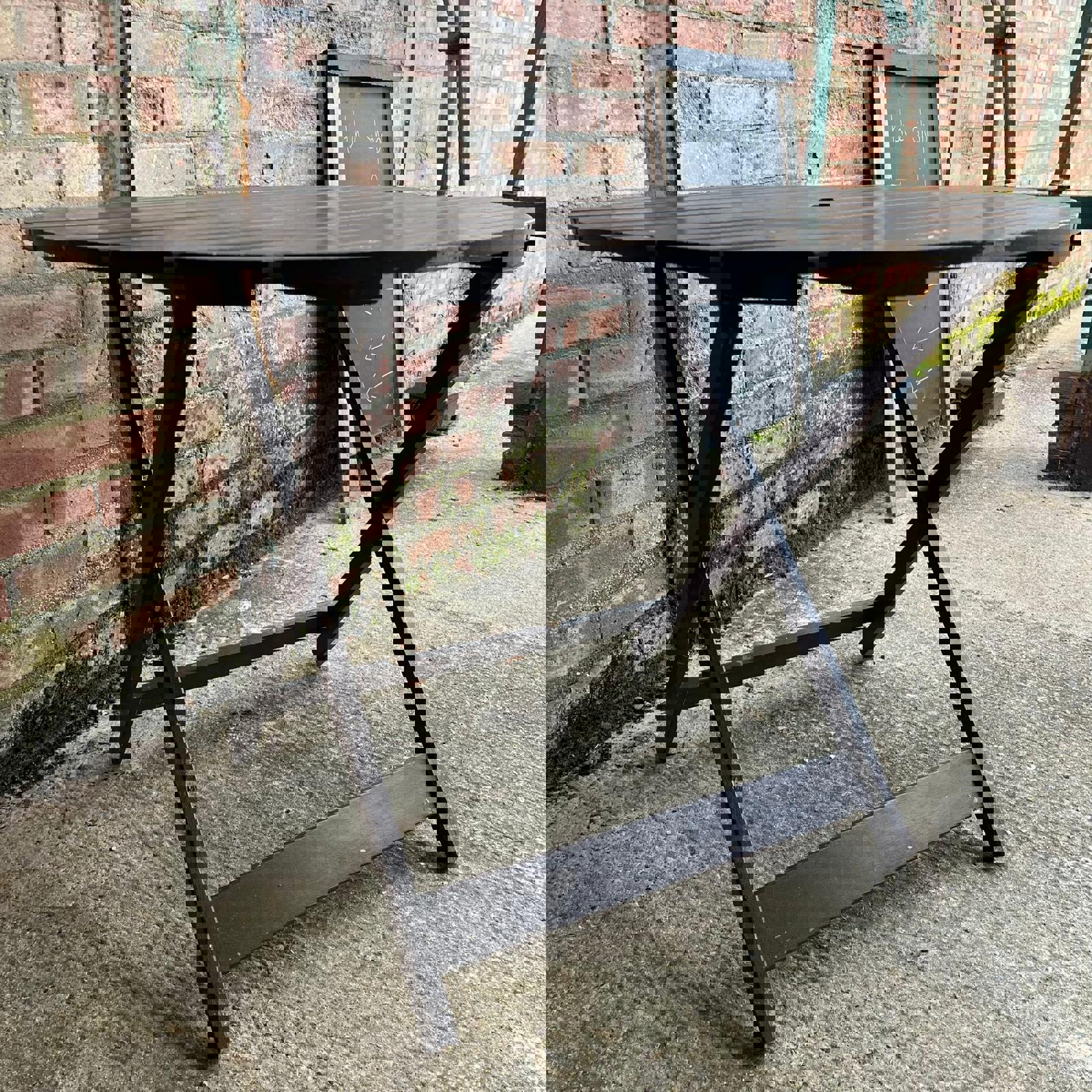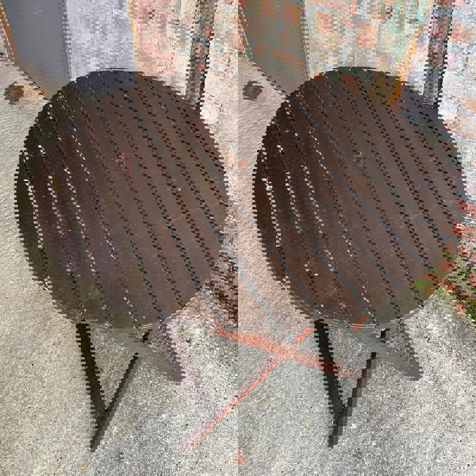 Hardwood Circular Wooden Folding Garden Table Stained Brown Seats 4