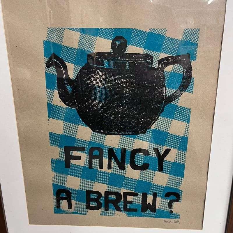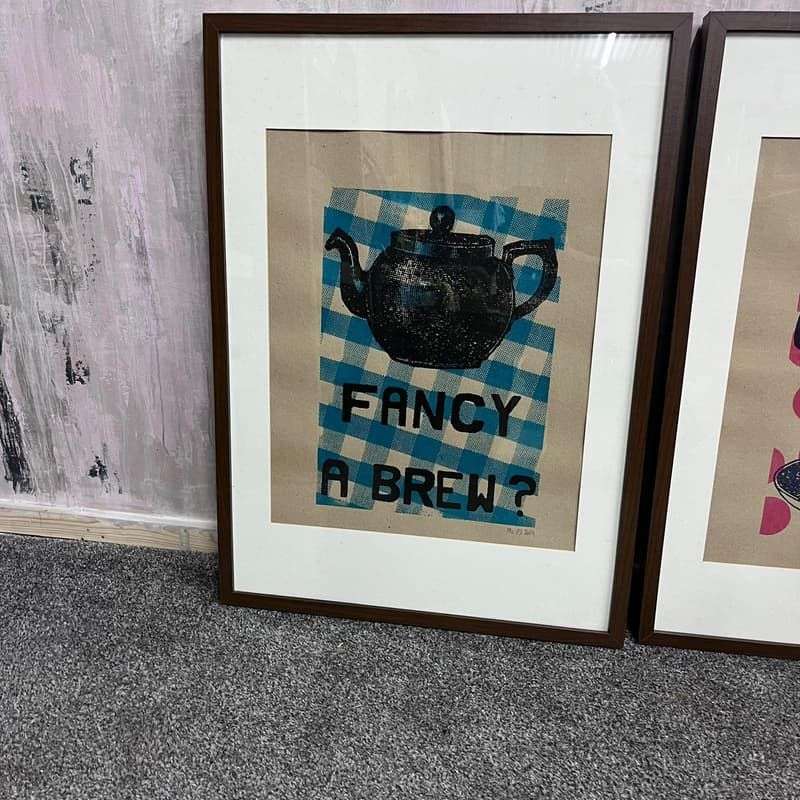Pair Dark Framed Prints Mr PS 2009 Coffee Shop Tea Room Teapot Cup & Saucer