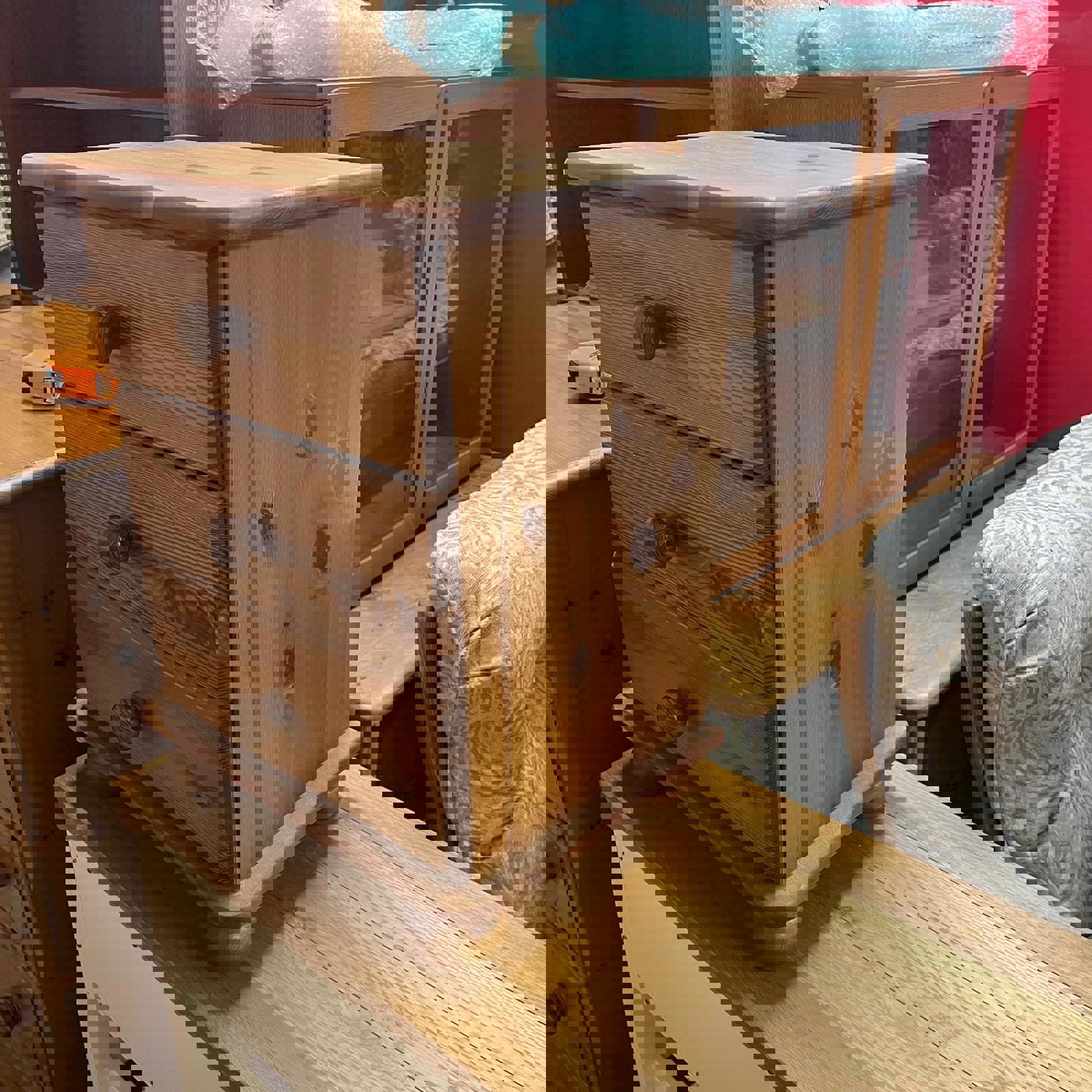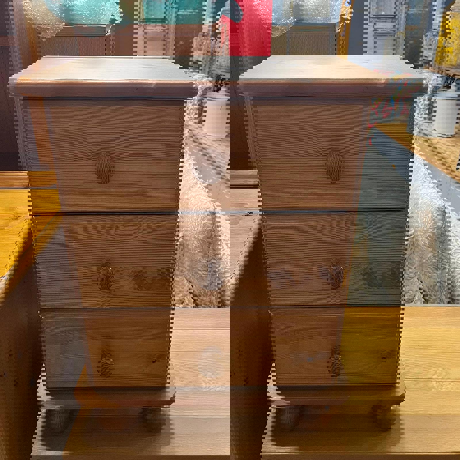 Pine Bedside Set of 3 Drawers Knob Handles Ball Feet