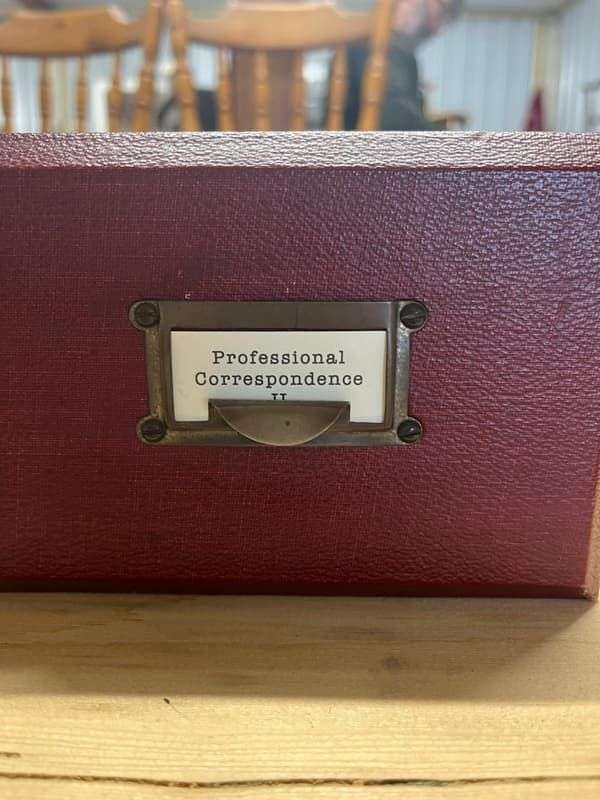 Vintage 6 Red Faux Leather Covered Filing Drawers Brass Handles Label Holders