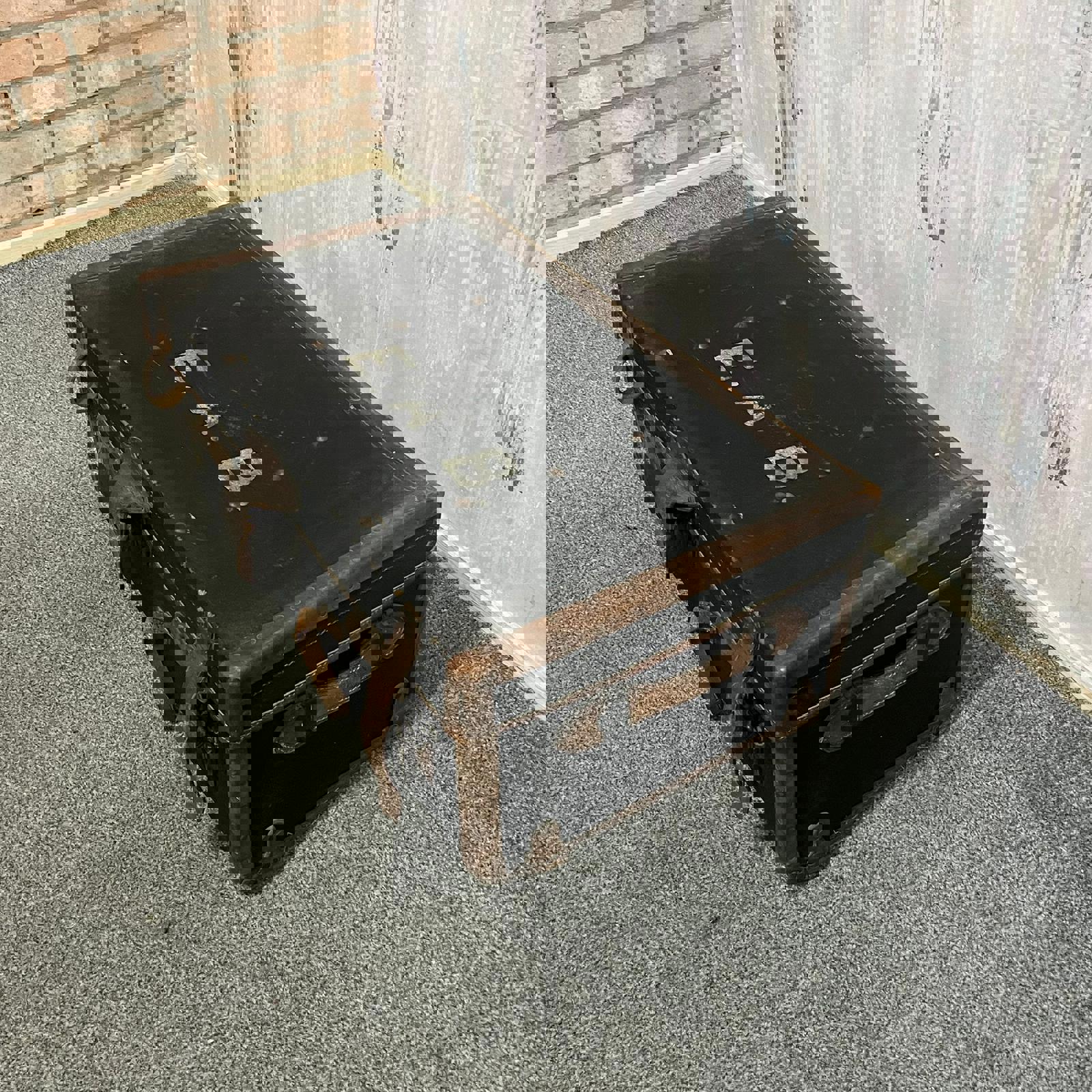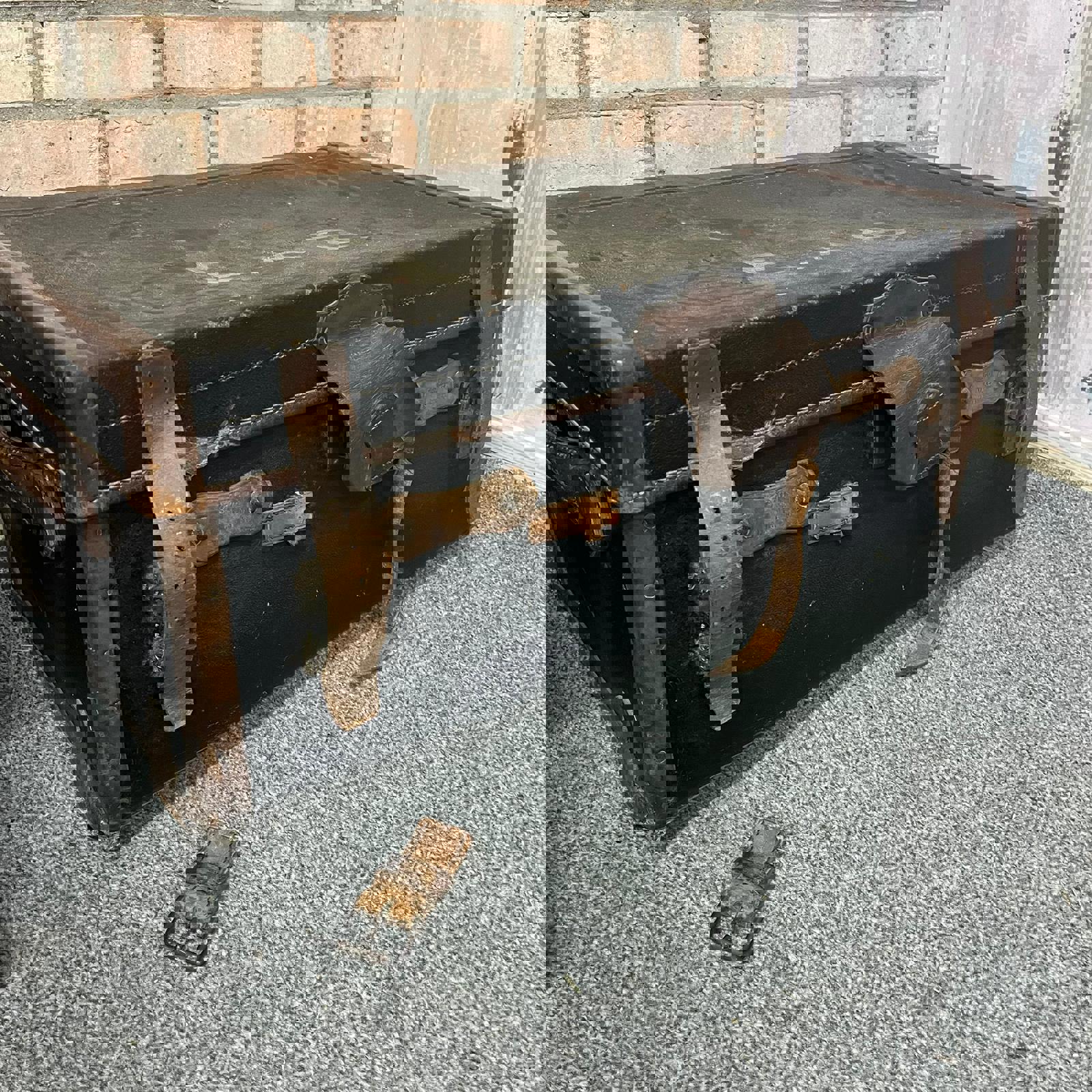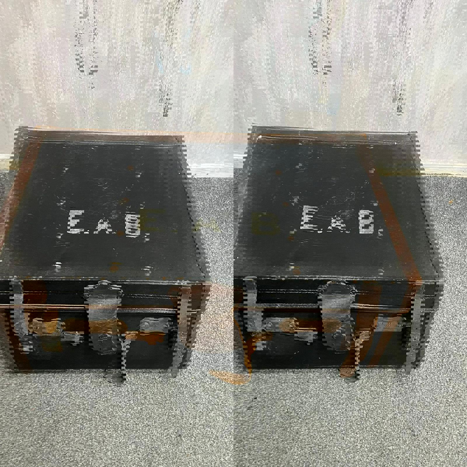 Vintage Leather Travel Trunk Black Carcass Brown Leather Straps and Handles