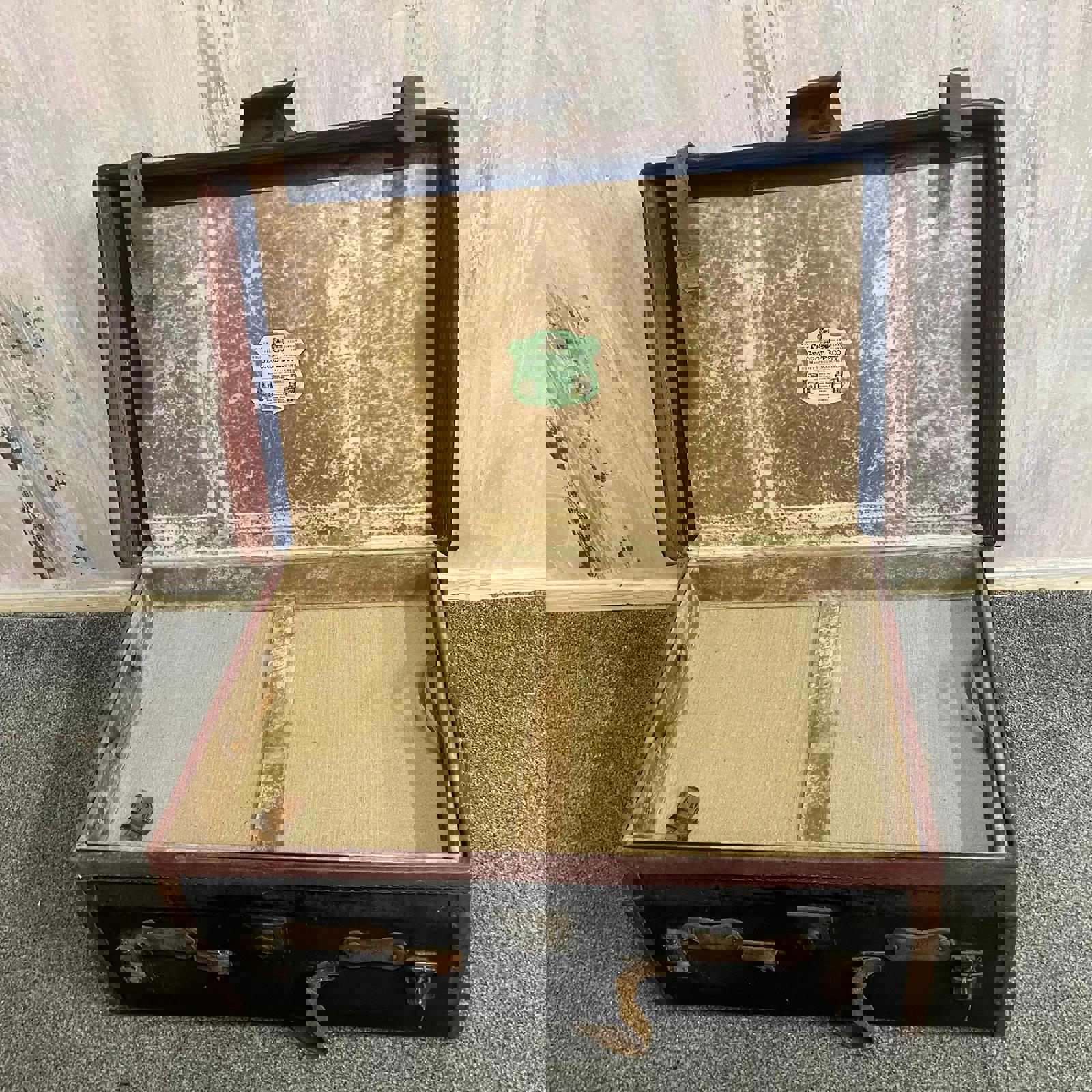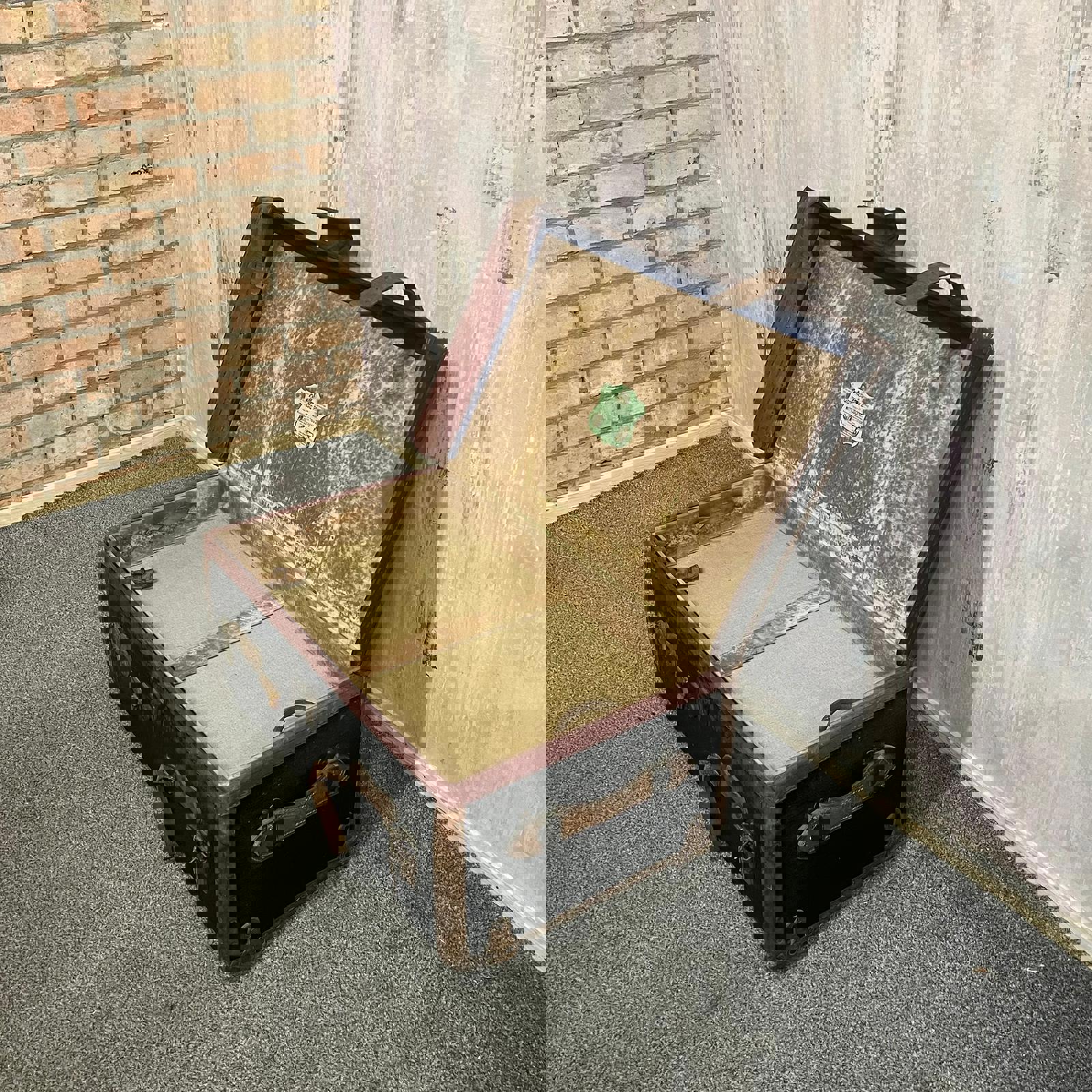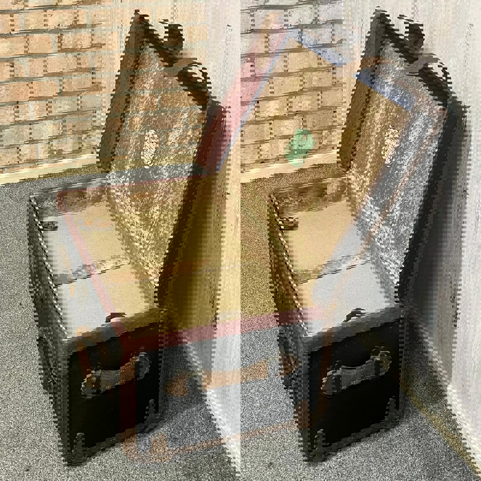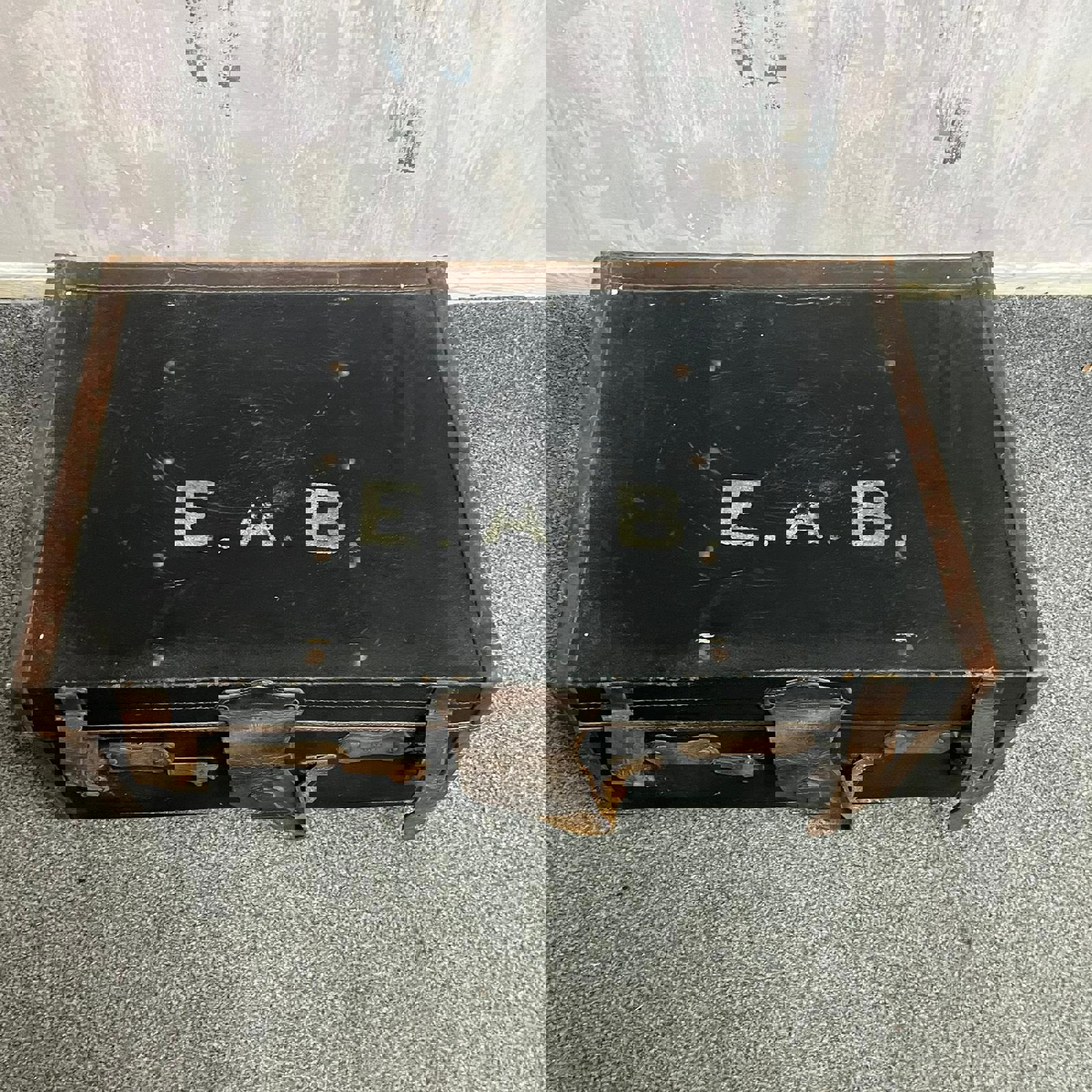 Vintage Leather Travel Trunk Black Carcass Brown Leather Straps and Handles