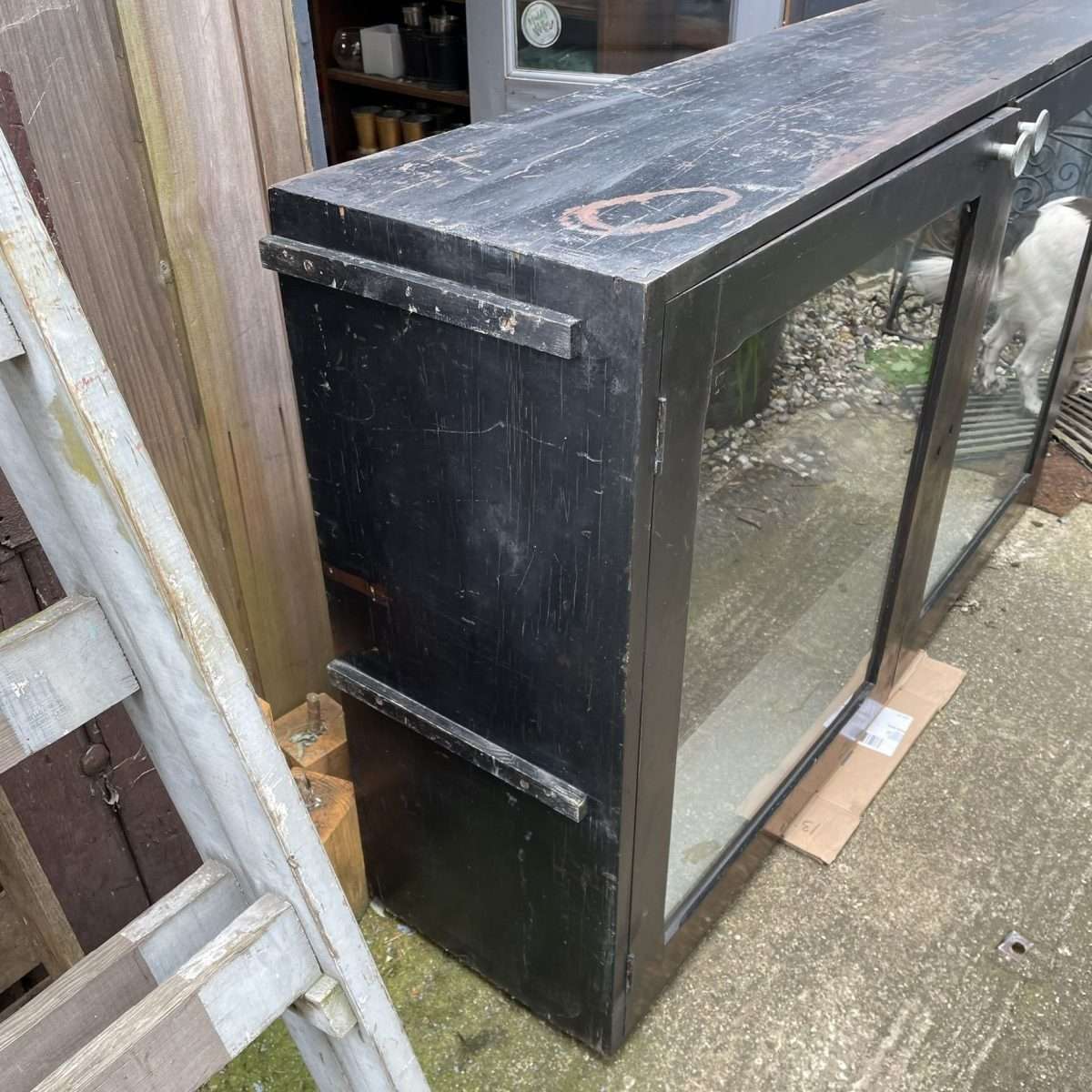 Vintage Rustic Glazed Double Shop Counter Cabinet Shelves Hospitality Retail