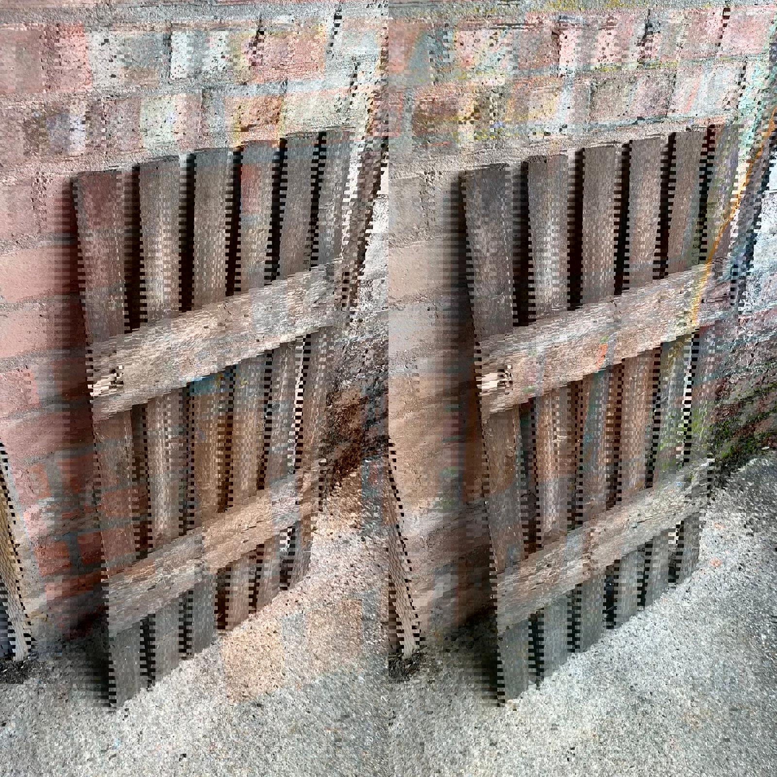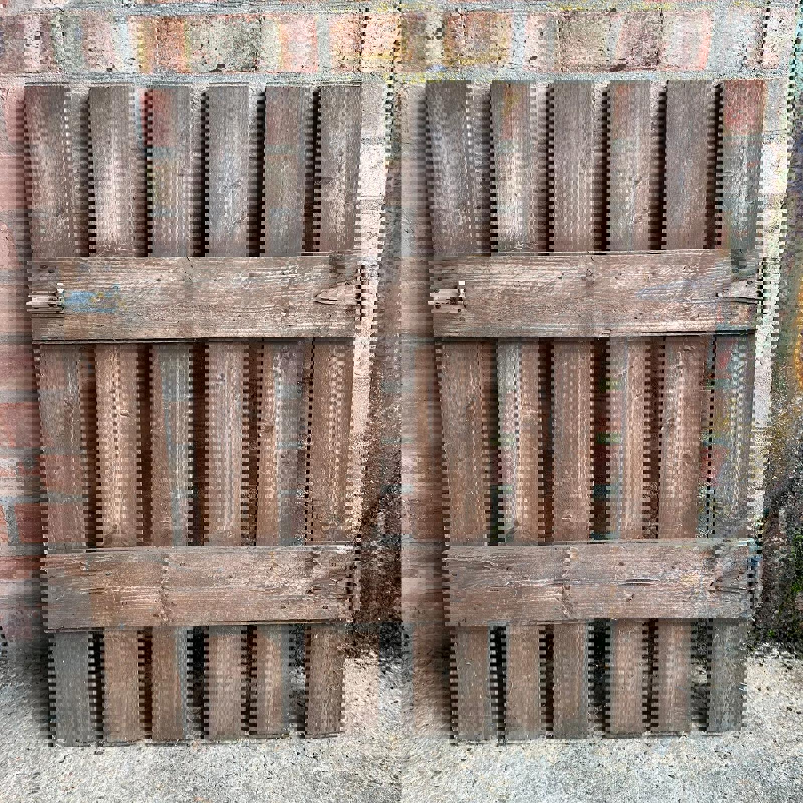 Vintage Wooden Garden Gate With Hinges & Bolt Planks Stained Brown Weathered