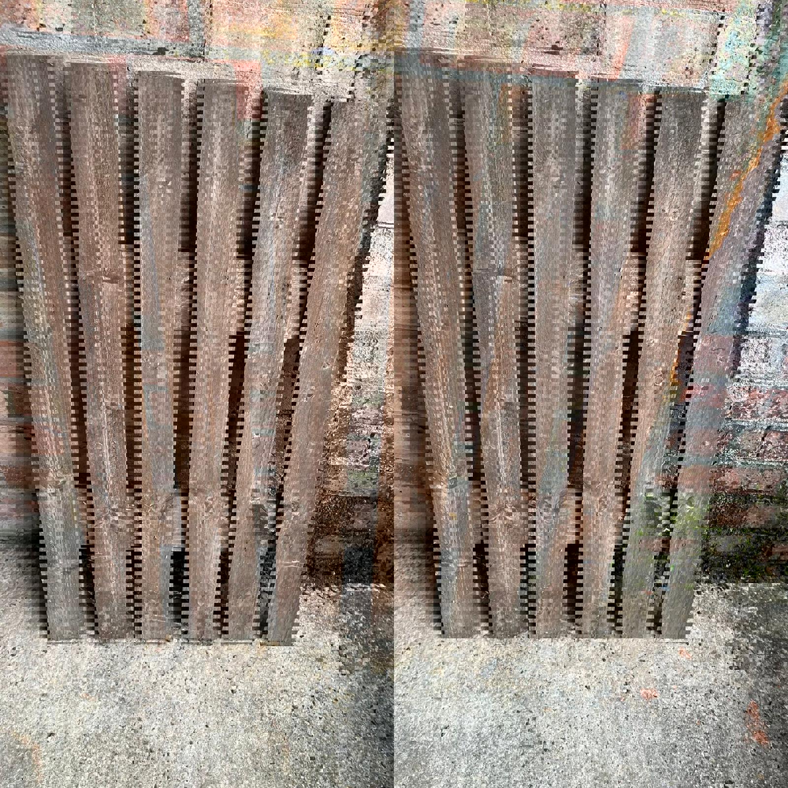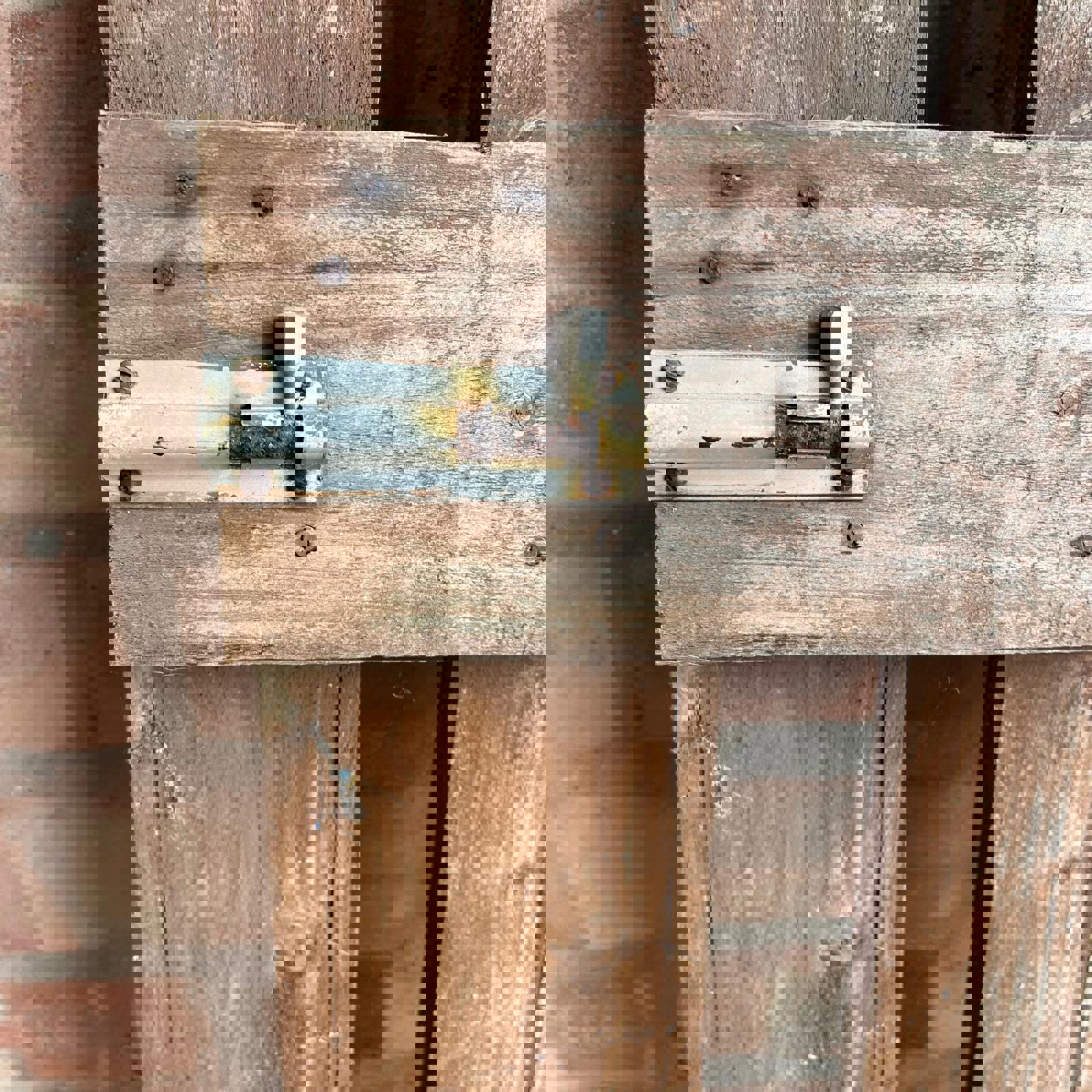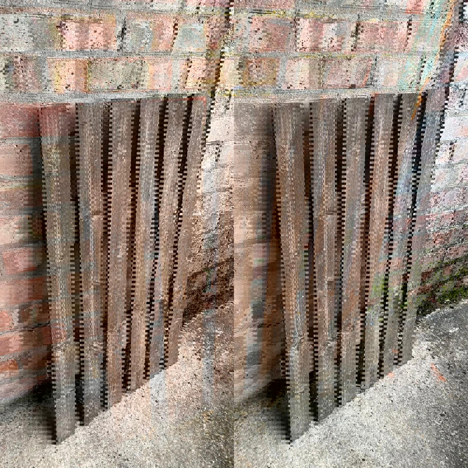 Straight plank design stained brown, but now weathered.