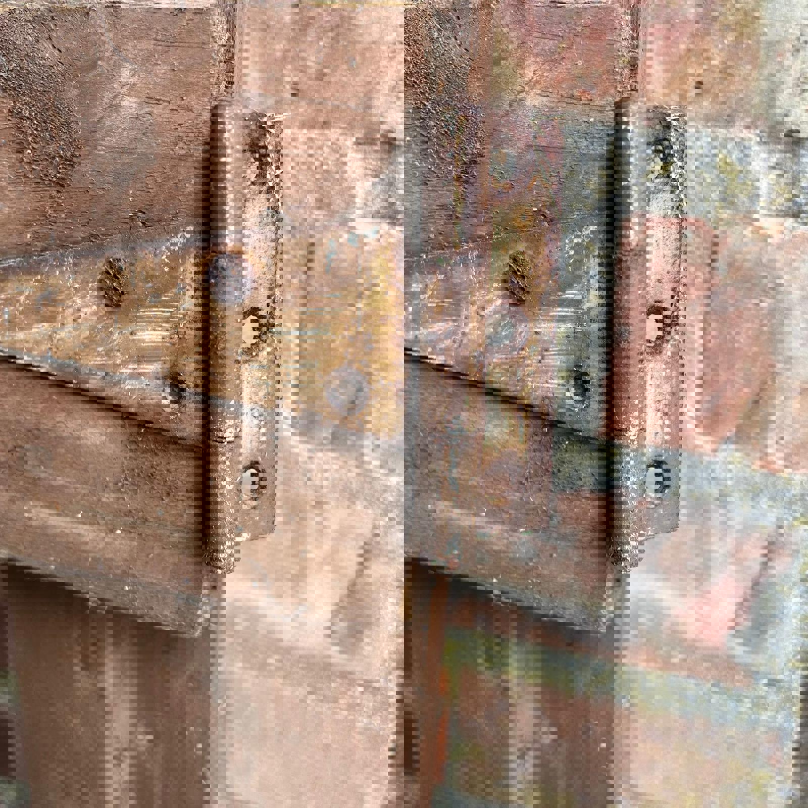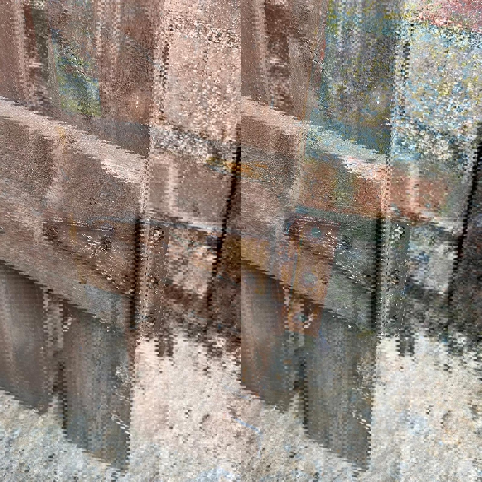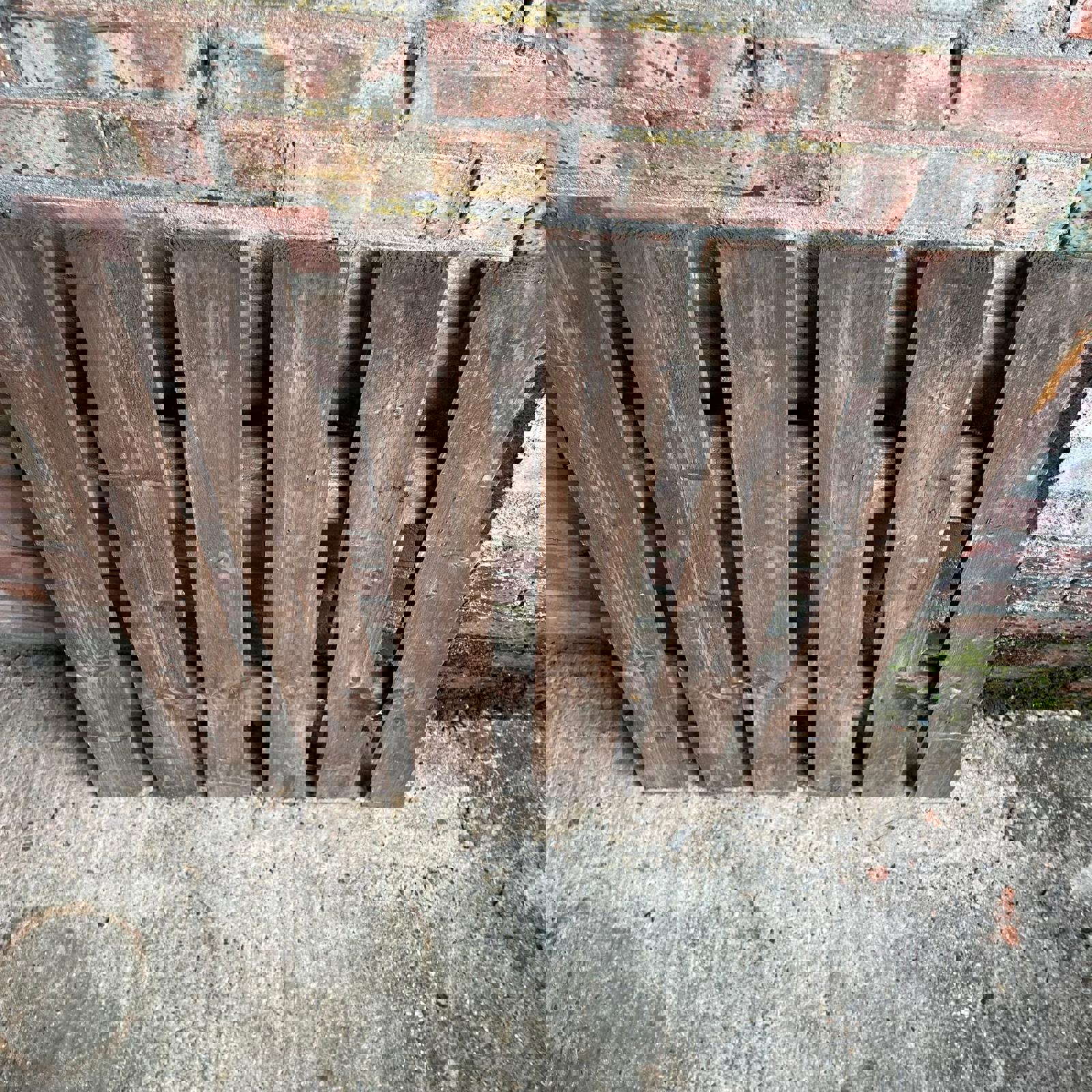 Straight plank design stained brown, but now weathered.
